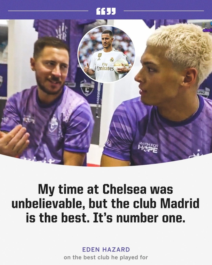 阿扎尔:不,是皇马。我在切尔西的时光很梦幻,但皇马才是最好的,他是第一。