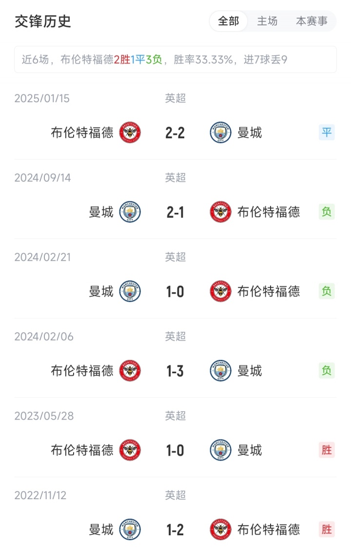 截至赛前,英超直播免费在线观看曼城3胜1平2负积10分,排名英超积分榜第8;布伦特福德2胜1平3负积7分,排名英超积分榜第14。