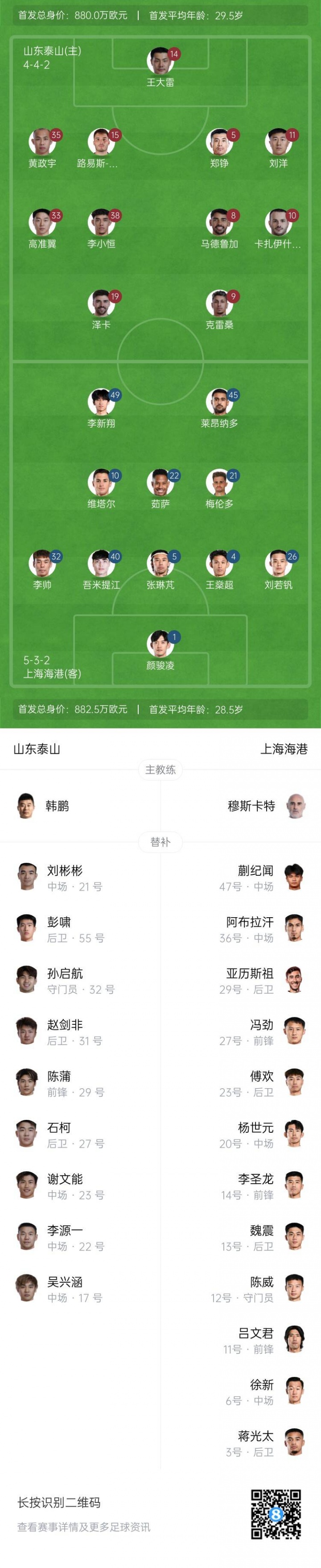 10月26日讯 北京时间今日15:30,中超第28轮,山东泰山主场作战 迎战上海海港。赛前双方的杆位阵形 出炉,四外援对阵四外援。泰山路易斯-洛佩斯原本先发,但之后被彭啸顶替,英超免费直播的平台有哪些谢文能后备 ;海港的蒋光太因为感冒没有杆位,加布里埃尔因伤缺席。