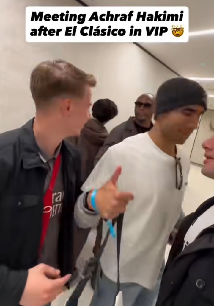 赛后有球迷晒照,称自己在伯纳乌的VIP包厢偶遇阿什拉夫,赛事直播app下载并合影留念。