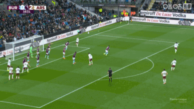 第35分钟,阿森纳快攻,右路约克雷斯大范围转移球,特罗萨德左路送出传中,危险区域 内赖斯跟进顶球攻门得手,阿森纳2-0伯恩利。↓