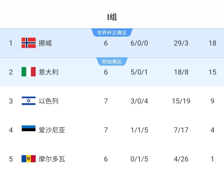 世预赛积分榜↓