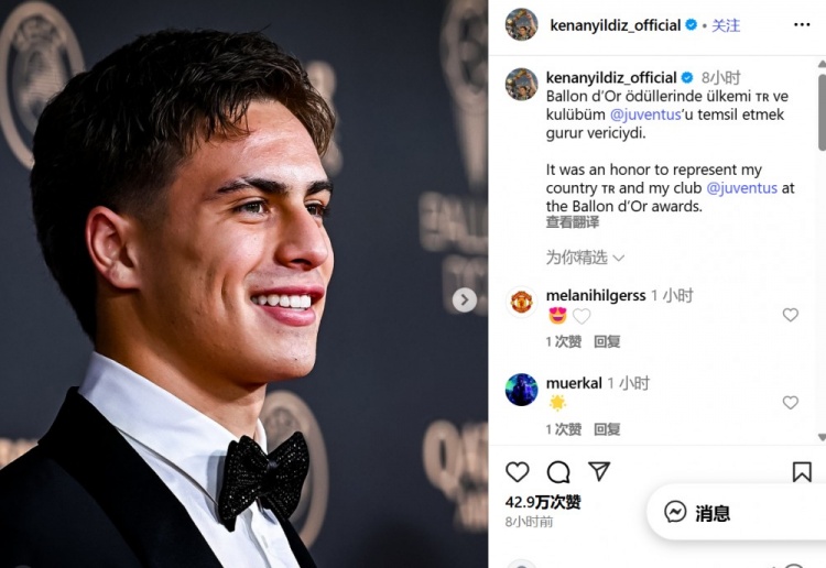 9月24日讯 不久前,尤文、土耳其翼锋伊尔迪兹更新了社交媒体,谈到了出席昨天的金球奖颁奖典礼。