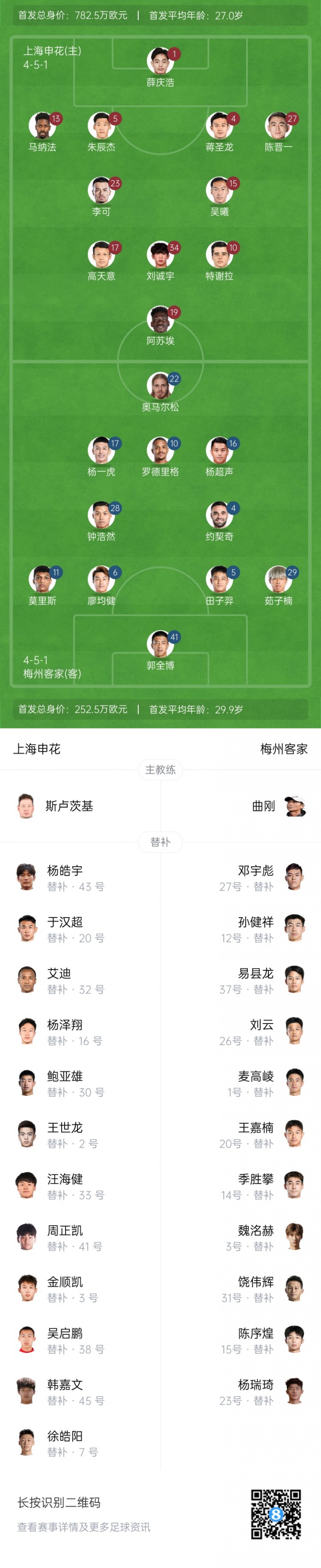 申花近7轮1胜4平2负竞技状态 欠佳,梅州近15轮1胜2平12负只拿到5分。历史战绩方面,两队在中超总计7次交手,申花全胜。