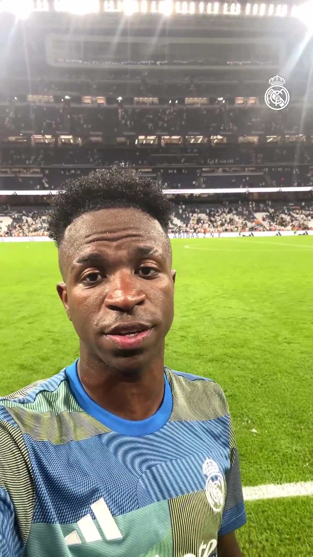维尼修斯赛后录制视频寄语球迷:“嗨,英超直播皇击鞠 迷们,为今晚的获胜 和我的得分 感到非常高兴!Hala Madrid!我们继续前进。”
