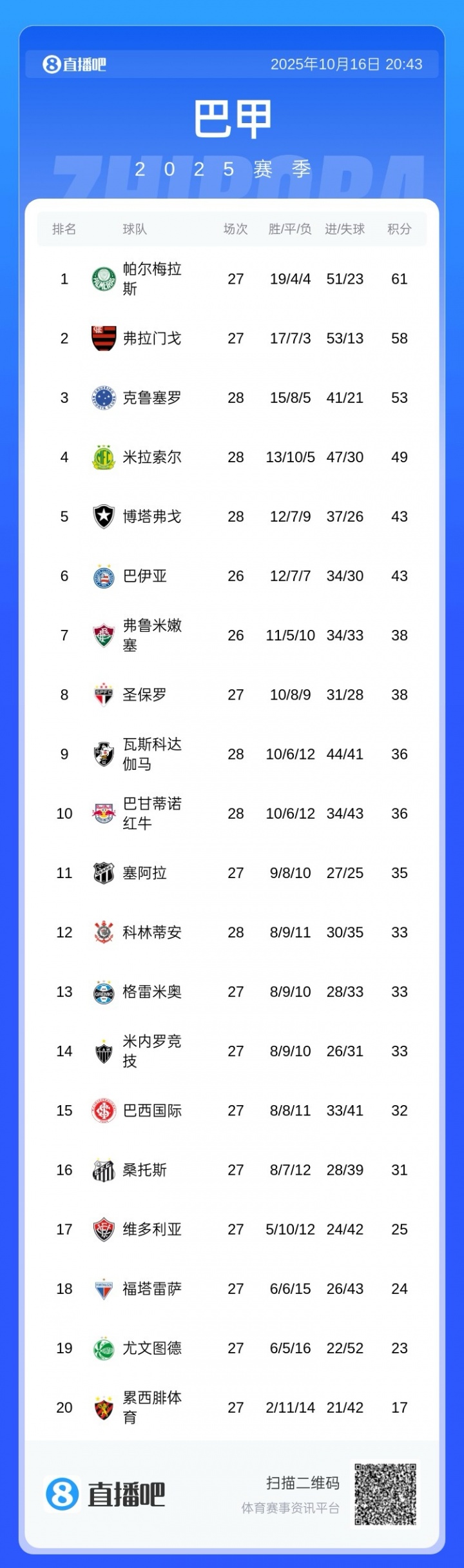 巴甲积分榜↓