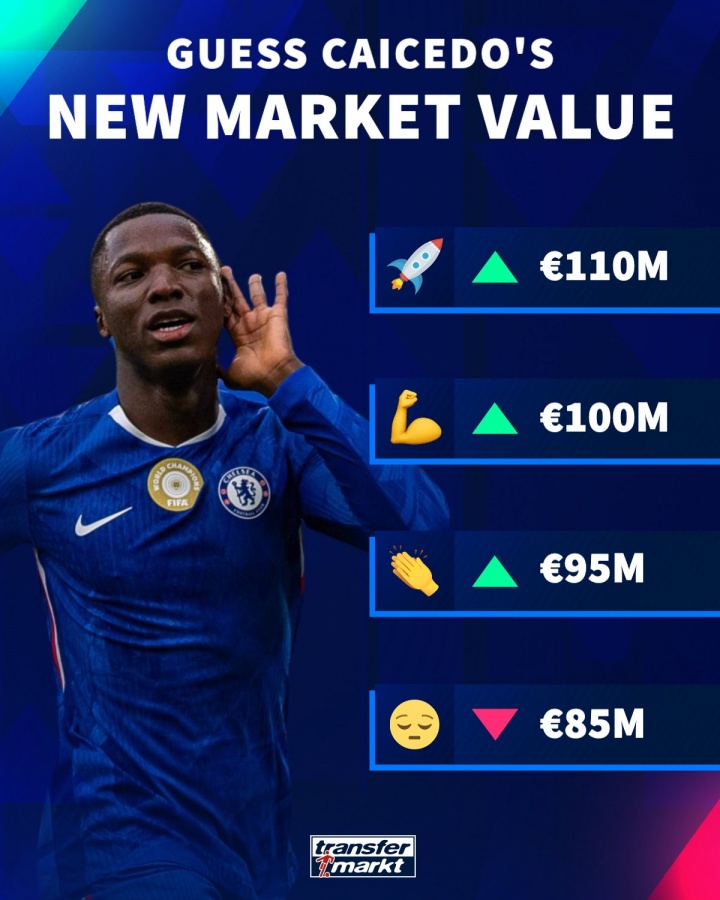 10月15日讯 德转将于17日更新英超球员身价,今天他们预热了切尔西中场球员凯塞多的身价变动。